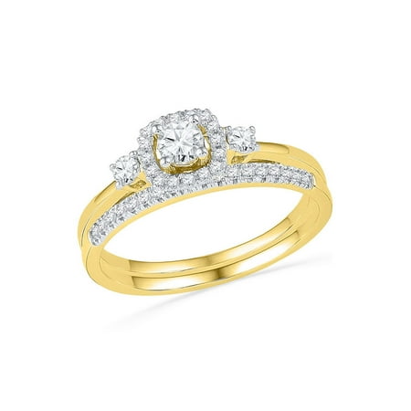 <ul> <li>10kt Yellow Gold</li> <li>1/2 Carats total weight --- 1/5 carat center solitaire</li> <li>Widest point width: 6.5 mm (.26 inches )<br />; Width of shank: 2 mm</li> <li>3.33 grams (approximately)</li> <li>Ring size selectable. All diamonds are natural and conflict-free in origin.</li> </ul>