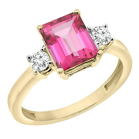 14K Yellow Gold Natural Pink Topaz Ring Octagon 8x6 mm with Diamond Accents, sizes 5 - 10
