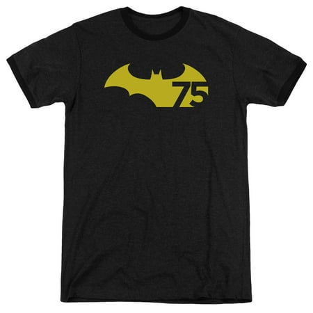 Batman 75 Logo 2 Mens Adult Heather Ringer Shirt Black 3X