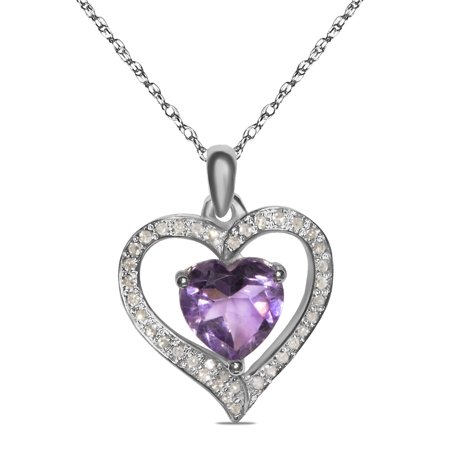 1/7CTTW Diamond with Amethyst in 10k White Gold Pendant with Complimentary 18 Chain