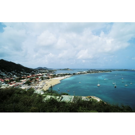 Bill Bachmann / Design Pics Stretched Canvas Art - Saint Martin, view of coastal town and harbor; Caribbean, Overlooking Marigot from fort - Large 34 x 22 inch Wall Art Decor Size.