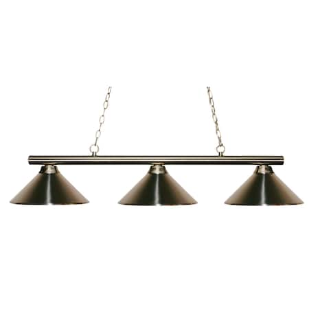 Z-Lite 155-3BN-MBN Sharp Shooter Three Light Billiard, Metal Frame, Brushed Nickel Finish and Metal Brushed Nickel Shade of Metal Material