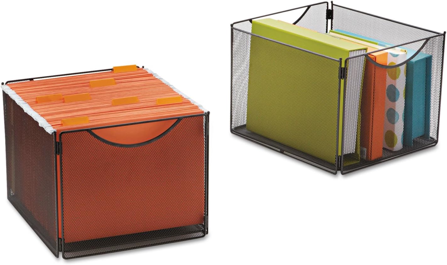 Steel mesh cube bins support up to 20 lbs. each and stack up to three high. Use alone or slide into the Onyx Mesh Cube for storage versatility. Quick and easy assembly with no tools required; collapses for compact storage when not in use.