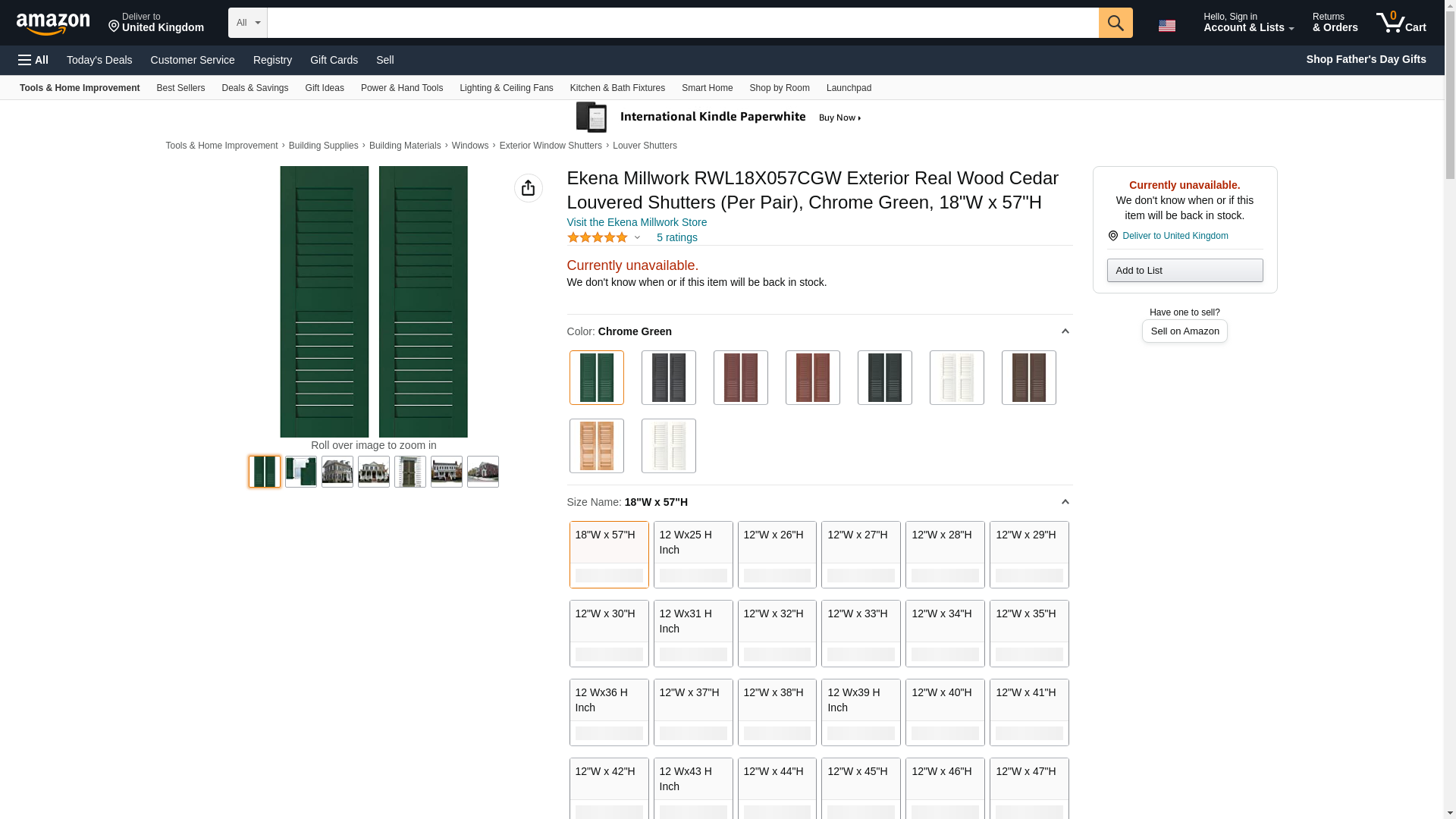 Ekena Millwork RWL18X057CGW Exterior Real Wood Cedar Louvered Shutters (Per Pair), Chrome Green, 18"W x 57"H
