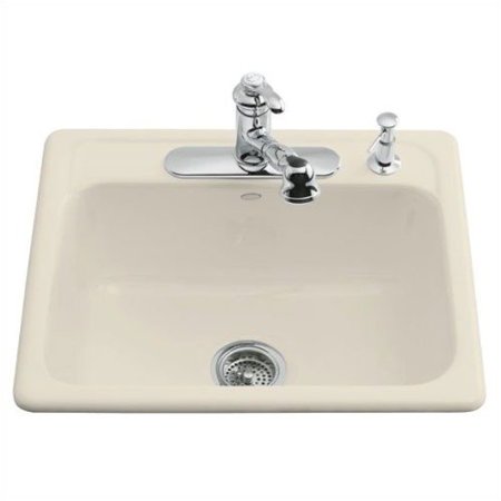 KOHLER K-5964-4-47 MAYFIELD 25 INCH SINGLE BASIN TOP-MOUNT ENAMELED CAST-IRON KITCHEN SINK, ALMOND