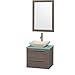 Wyndham Collection Amare 24 inch Single Bathroom Vanity in Grey Oak with Green Glass Top with Ivory Marble Sink, and 24 inch Mirror
