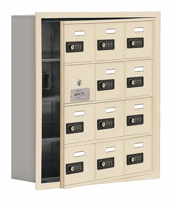 Salsbury Industries 19145-12SRC Cell Phone-Access Panel-4 Unit Recessed Mounted-Resettable Combo Locks with 5-Inch Diameter Compartments, Sandstone