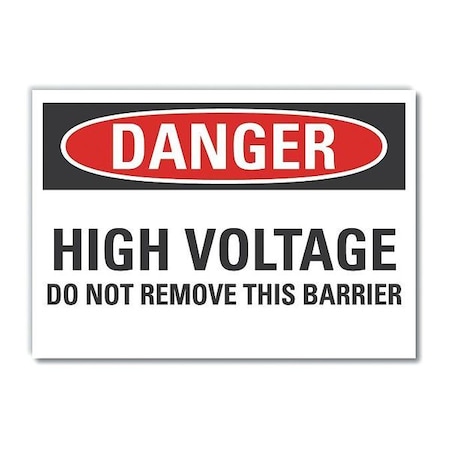 High Voltage Danger Reflective Label, Vertical Rectangle, Number of Printed Sides 1, English, Sign Format Traditional OSHA, Sign Legend High Voltage Do Not Remove This Barrier, Sign Legend Background Color White, Sign Legend Style Text