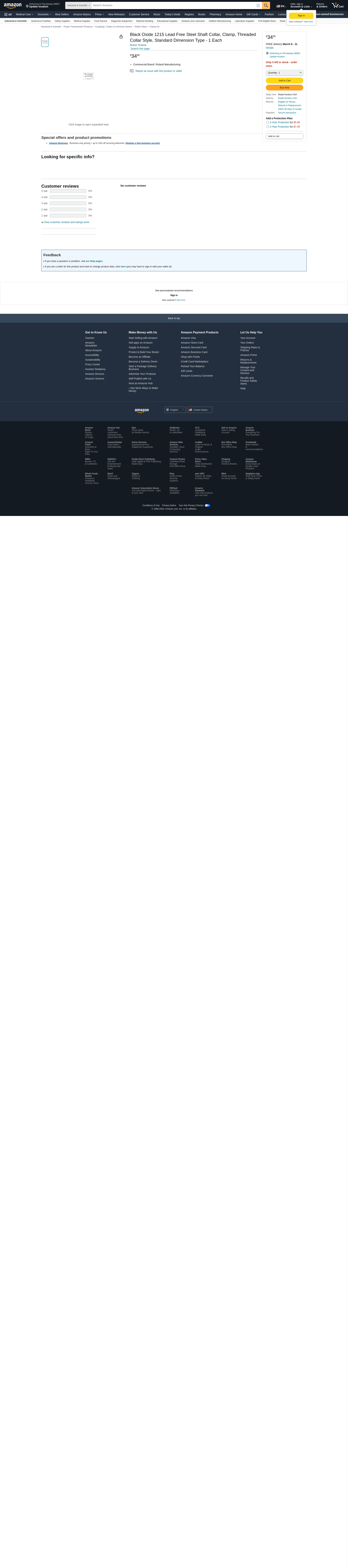 | Feature | Price For: Each Number of Pieces: 1 Dimension Type: Standard Item: Shaft Collar Operating Temp. Range: -40 Degrees to 350 Degrees F Collar Style: Clamp, Threaded Screw Material: Alloy Steel Material: Black Oxide 1215 Lead Free Steel Outside Dia.: 1-7/8" Clearance Dia.: 2.140" Width: 1/2" Bore Dia.: 1-1/8"-12 Screw Size: 1/4"-28 |