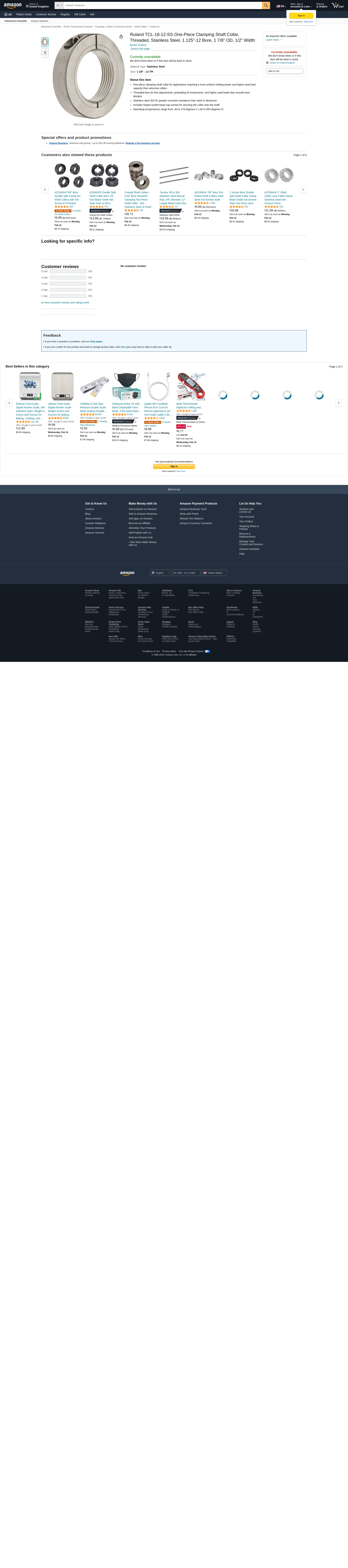 Ruland Mfg TCL-18-12-F | Threaded Shaft Collar Id 1 1/8-12 In | 2AKY9 | Raptor Supplies Worldwide