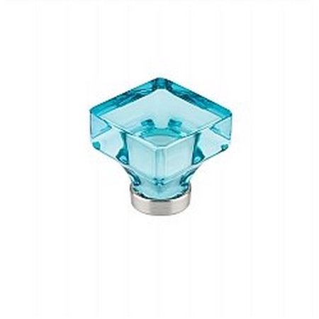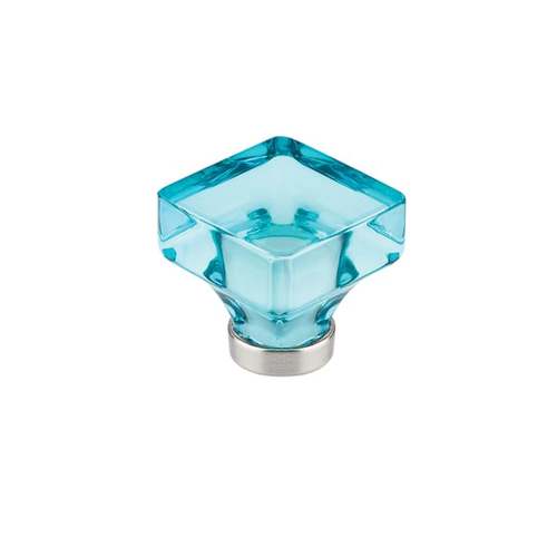 Emtek 86553 Lido Series 1-5/8 Inch Long Cyan Crystal Square Cabinet Knob, Satin Nickel