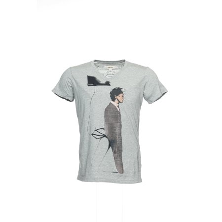 <li><strong>Cotton V-Neck T-Shirt by Diesel </strong></li> <li><strong>Screen Print 'Graphic' on Front | Distressed Cuffs & Hem</strong></li> <li><strong>V-Neck | Short Sleeves | Hemmed Cuffs</strong></li> <li><strong>Straight Hem </strong></li> <li><strong>Machine Washable</strong></li> <br /> <strong>Brand: </strong>Diesel <br /> <strong>Color: </strong>Heather Gray <br /> <strong>Pattern: </strong>Graphic <br /> <strong>Retail Price: </strong>$48 <br /> <strong>Style: </strong>V-Neck T-Shirts <br /> <strong>Material: </strong>100% Cotton <br /> <strong>Label Care: </strong>Machine Wash (Cold) <br /> <strong>Made In: </strong>Cambodia <br /> <strong>Collar Style: </strong>V-Neck <br /> <strong>Sleeve Length: </strong>Short Sleeve <br /> <strong>Cuff Style: </strong>Hemmed Cuffs <br /> <strong>Back Style: </strong>Plain <br /> <strong>Vent Style: </strong>None <br /> <strong>Hem Style: </strong>Straight