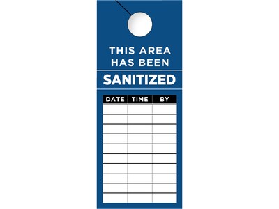 Cosco Paper SANITIZED Safety Door Hanger, 8" x 3.5", Blue/Black/White, 50/Pack (098467PK50) | Quill.com