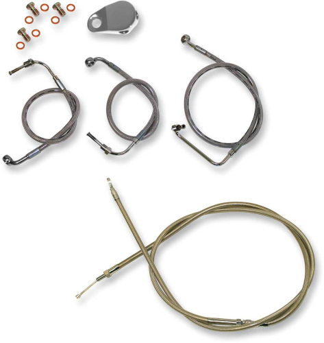 <LI>Takes Cable Calculation Headaches Out of Swapping Handlebars</LI><LI>Kits Give You the Correct Length Cables and Brake Lines You Need So You Can Complete a Handlebar Swap, Install the New Cables/brake Lines and Ride</LI><LI>Kits Include Throttle Cable, Idle Cable (Except 08-11 Dressers), Clutch Cable, Brake Lines, Chrome T Brake Line Junction, Banjo Bolts, Fittings and Copper Crush Washers</LI><LI>Brake Lines Are DOT Approved</LI><LI>Electrical Wire Extensions Not Included (Available Separately)</LI><LI>Made in the U.S.A.</LI><LI>Intended to Be Used With 12" to 14" Ape Hanger Style Handlebars</LI><BR></BR><LI><B>Please Note: The Image Displayed Is Representative of the Item, but May Vary Depending on Your Specific Model.</B></LI>