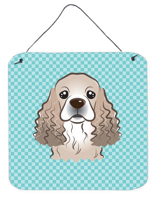 Carolines Treasures BB1154DS66 Checkerboard Blue Cocker Spaniel Aluminum Metal Wall Or Door Hanging Prints, 6 x 6 In
