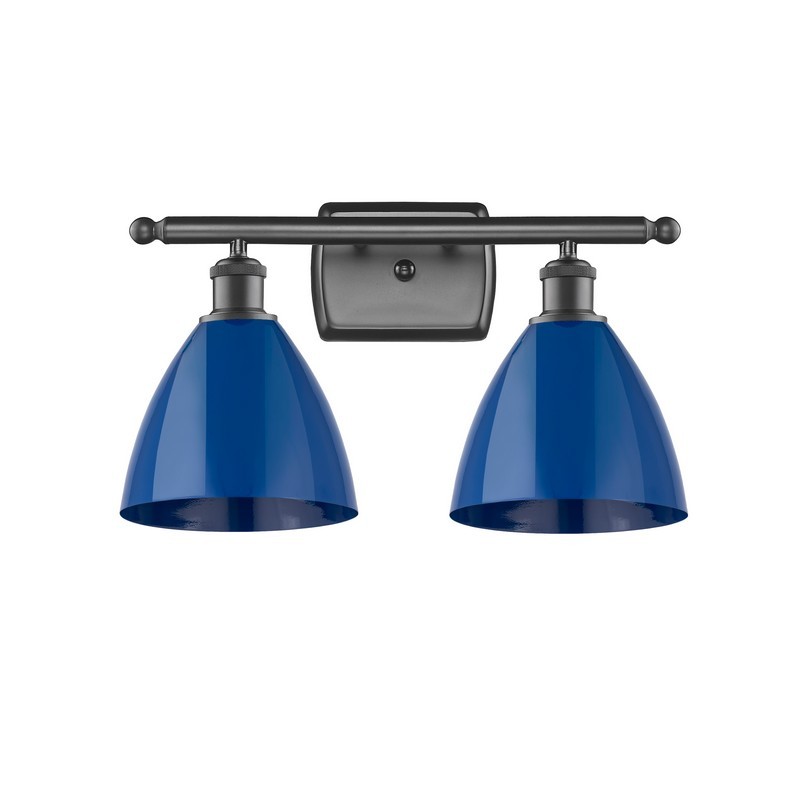INNOVATIONS LIGHTING 516-2W-OB-MBD-75-BL-LED PLYMOUTH DOME BALLSTON 17 1/2 INCH 2 LIGHT WALL MOUNT BATH VANITY LIGHT,...
