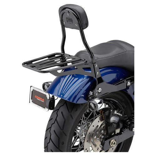 A detachable backrest offers the best of both worlds for a rider.<br> You get the convenience of a practical and comfortable back support, but one that is easily removed for around town riding.<br> Comes complete with all the mounting hardware needed for simple installation.<br> Each is bike-specific and arrives with mounting hardware, round bar, pad and backrest insert.<br> If you need more storage space, the optional fits Cobra luggage rack mounts directly to the fits Cobra backrest.