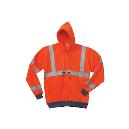 IndustrialSafety.com | Occunomix LUX-SWT3HZ-OS Wicking Hooded Sweatshirt W/Zipper, Solid, Orange, Class 3, Size S