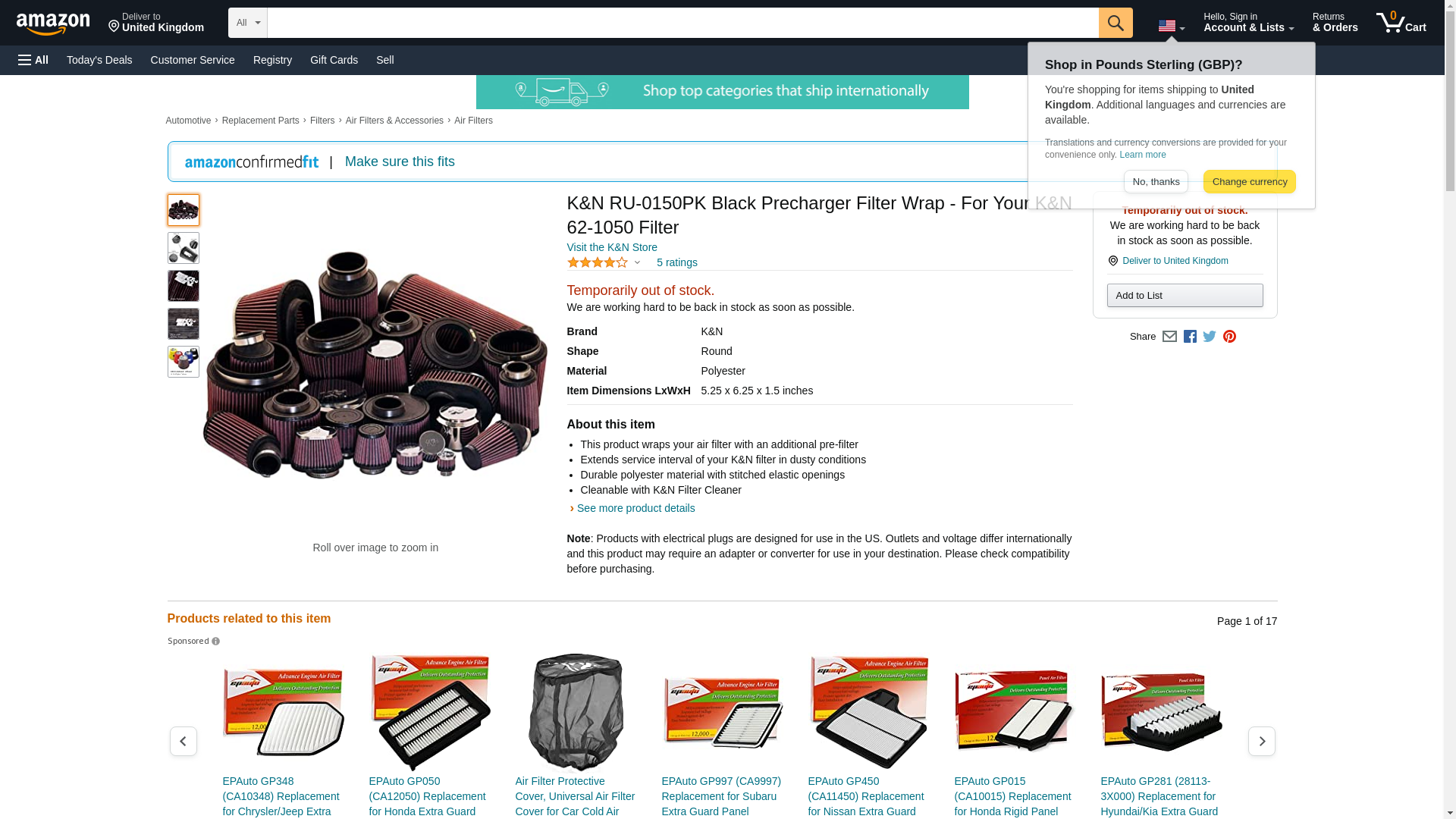 K&N RU-0150PK Black Precharger Filter Wrap - For Your K&N 62-1050 Filter