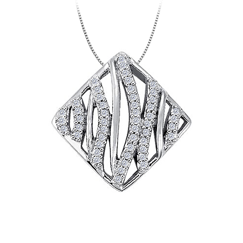 Fine Jewelry Vault UBNPD31981W14D Diamond square shaped pendant in 14K White Gold 0.25 CT TDWPerfect Jewelry Gift for Wo
