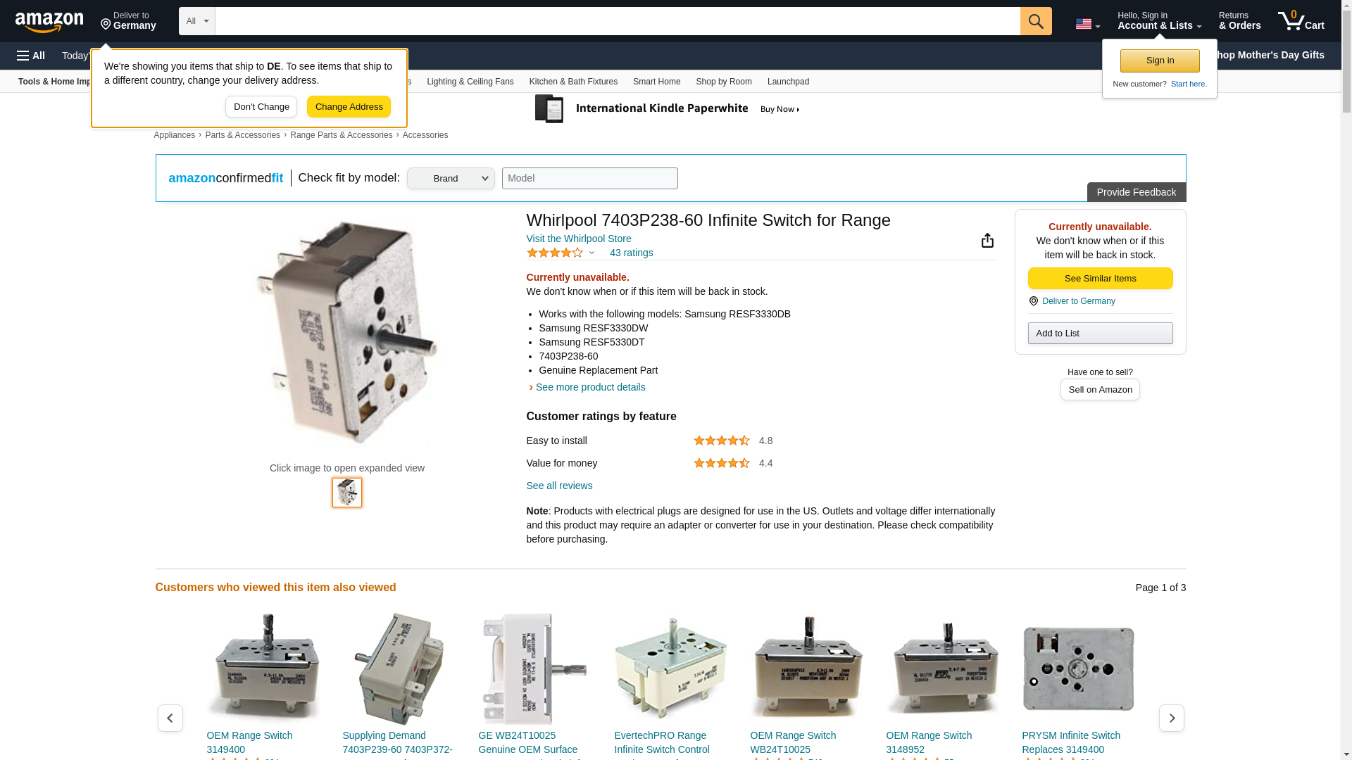 Whirlpool 7403P238-60 Infinite Switch for Range