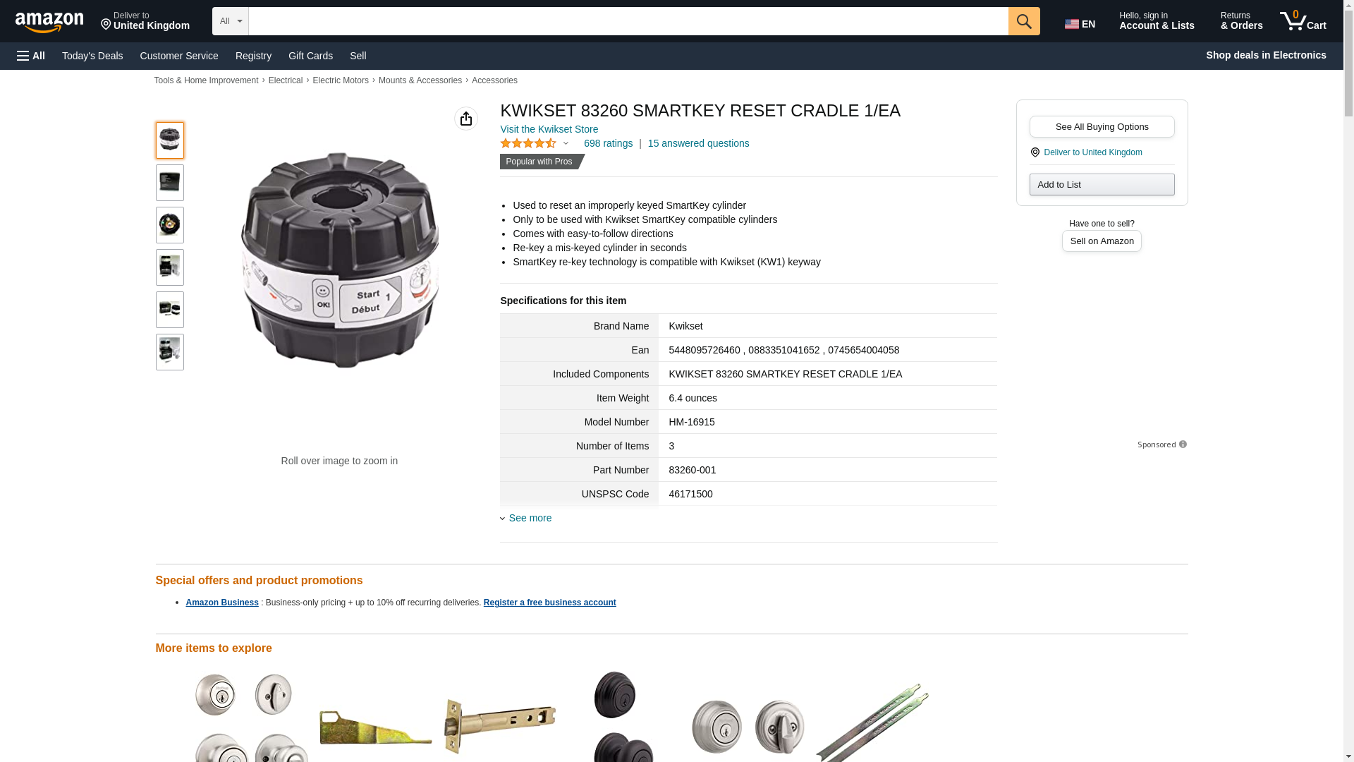 Kwikset SmartKey Cylinder Reset Cradle 83260 SMT RESET CRADLE PackageQuantity: 1 Model: 83260-001