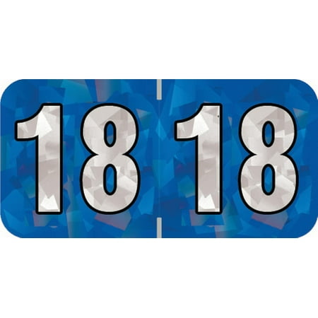 2018 Year Labels, PMA Compatible Series, Holographic Blue, 500/Roll, 2 Rolls, 3/4" x 1-1/2"