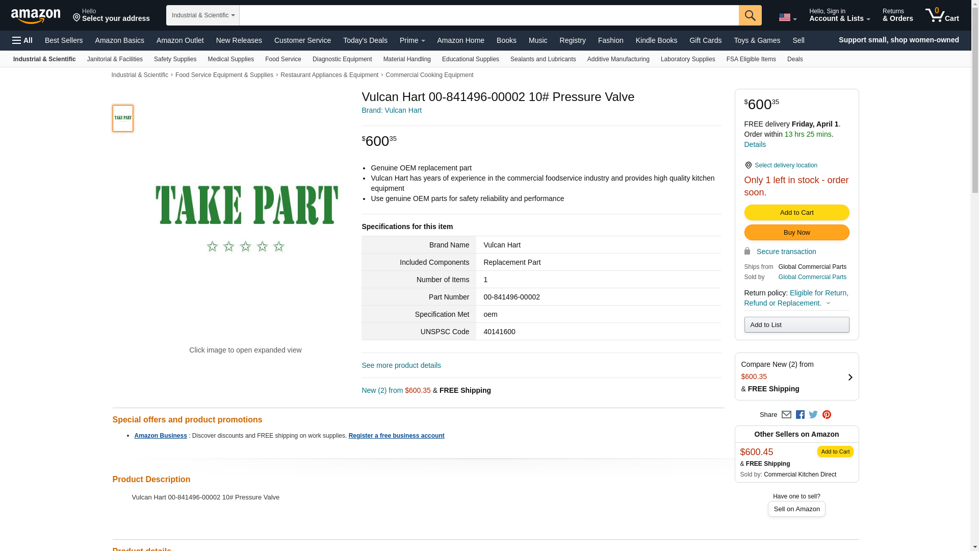 Vulcan Hart 00-841496-00002 10# Pressure Valve