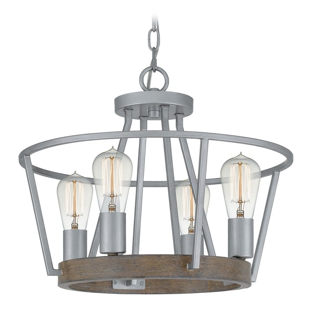With open framework and weathered styling, the Brockton comes farmhouse-approved. Finished in Brushed Silver or Grey Ash, the thin metal body pairs perfectly with the whitewash finish of the faux wood accents. Vintage filament bulbs provide soft, ambient light in this rustic charmer. Crafted from steel and finished in Brushed Silver Farmhouse style design with an open, drum-shaped silhouette and painted wood detailing Exposed bulbs allow for maximum light flow Capable of being dimmed when used with incandescent or dimmable LED bulbs Product Warranty: Product Warranty: Indoor Lighting Fixtures-Electrical Components [1 Year], Integrated LED (LED Bulbs Excluded)[5 Years], Finish[1 Year]; Outdoor Lighting Fixtures-Electrical Wiring & Sockets [1 Year], Integrated LED (LED Bulbs Excluded)[5 Years], "Armour" Finish[5 Years], Finish[2 Years]. Warranty: Indoor Lighting Fixtures-Electrical Components [1 Year], Integrated LED (LED Bulbs Excluded)[5 Years], Finish[1 Year]; Outdoor Lighting Fixtures-Electrical Wiring & Sockets [1 Year], Integrated LED (LED Bulbs Excluded)[5 Years], "Armour" Finish[5 Years], Finish[2 Years] / Room Suggestion: Bedroom/Dining/Entry/Foyer / Assembly Required: Yes / Canopy Included: Yes / Cord Length: 96.00 / Canopy Diameter: 5.00 X 5.00.