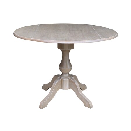 International Concepts 42" Round Dual Drop Leaf Pedestal Table-30.3" H Dining Table, Washed Gray Taupe