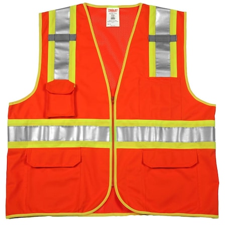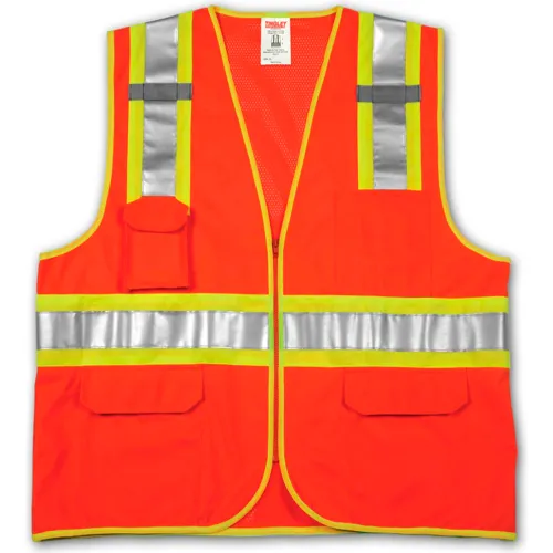 IndustrialSafety.com | Tingley V73859.L-XL Job Sight Class 2 Safety Vest, Solid/Mesh, H Pattern 2-Tone Tape, Zipper, Orange, Size: L-XL