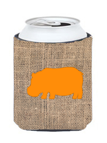 Carolines Treasures BB1130-BL-OR-CC Hippopotamus Burlap and Orange Can or Bottle Hugger