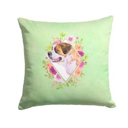 Carolines Treasures CK4346PW1414 14 x 3 x 14 in. Saint Bernard No.1 Green Flowers Fabric Decorative Pillow