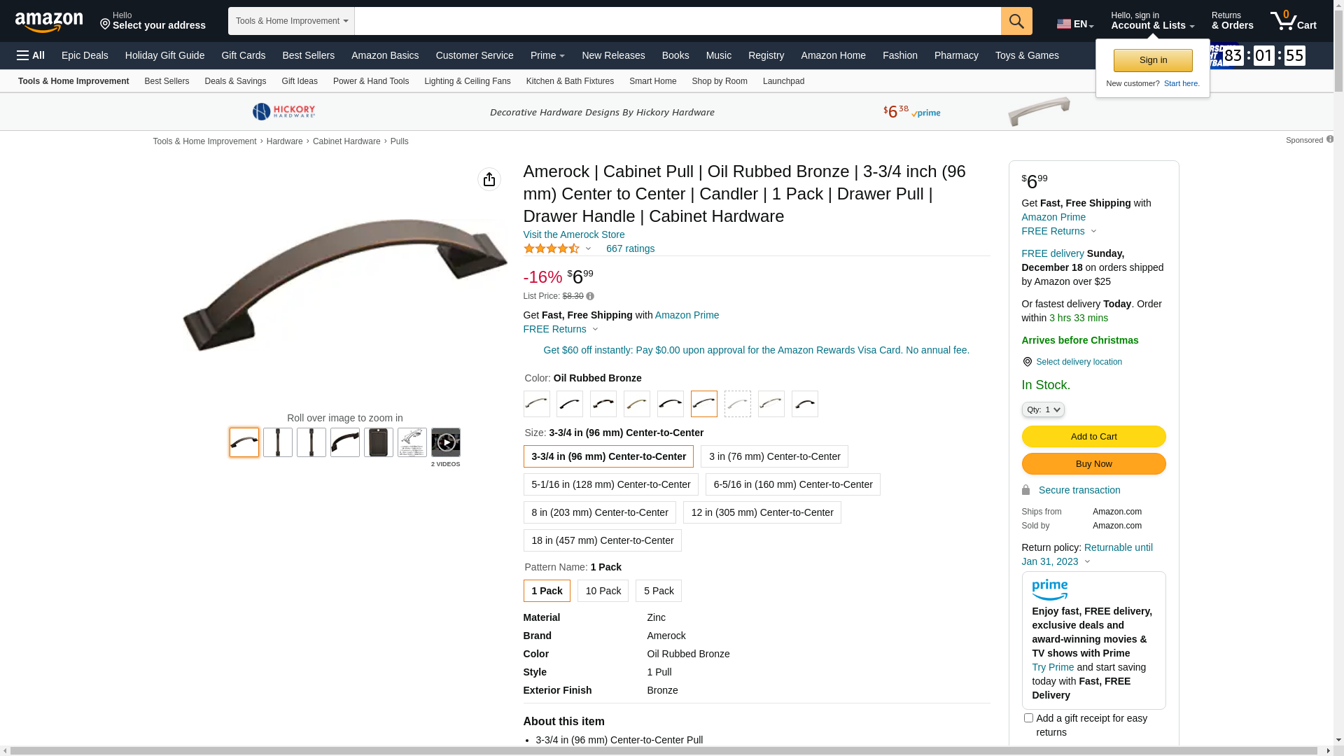 ![]() homeessentialsdirect.com | BP29355ORB | 1 | -2 | 1 | 1 @ $19.25 |