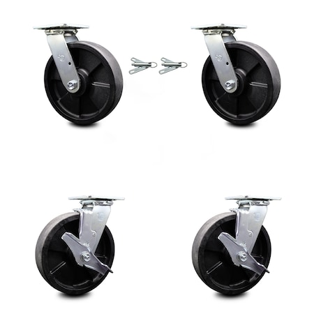Glass Filled Nylon Swivel Caster w/Main. Free Bearings Set of 4 w/8" x 2" Black Wheels - Includes 2 Swivel with Bolt on Swivel Locks & 2 Swivel with Brakes-5000 lbs Total Capacity-Service Caster Brand
