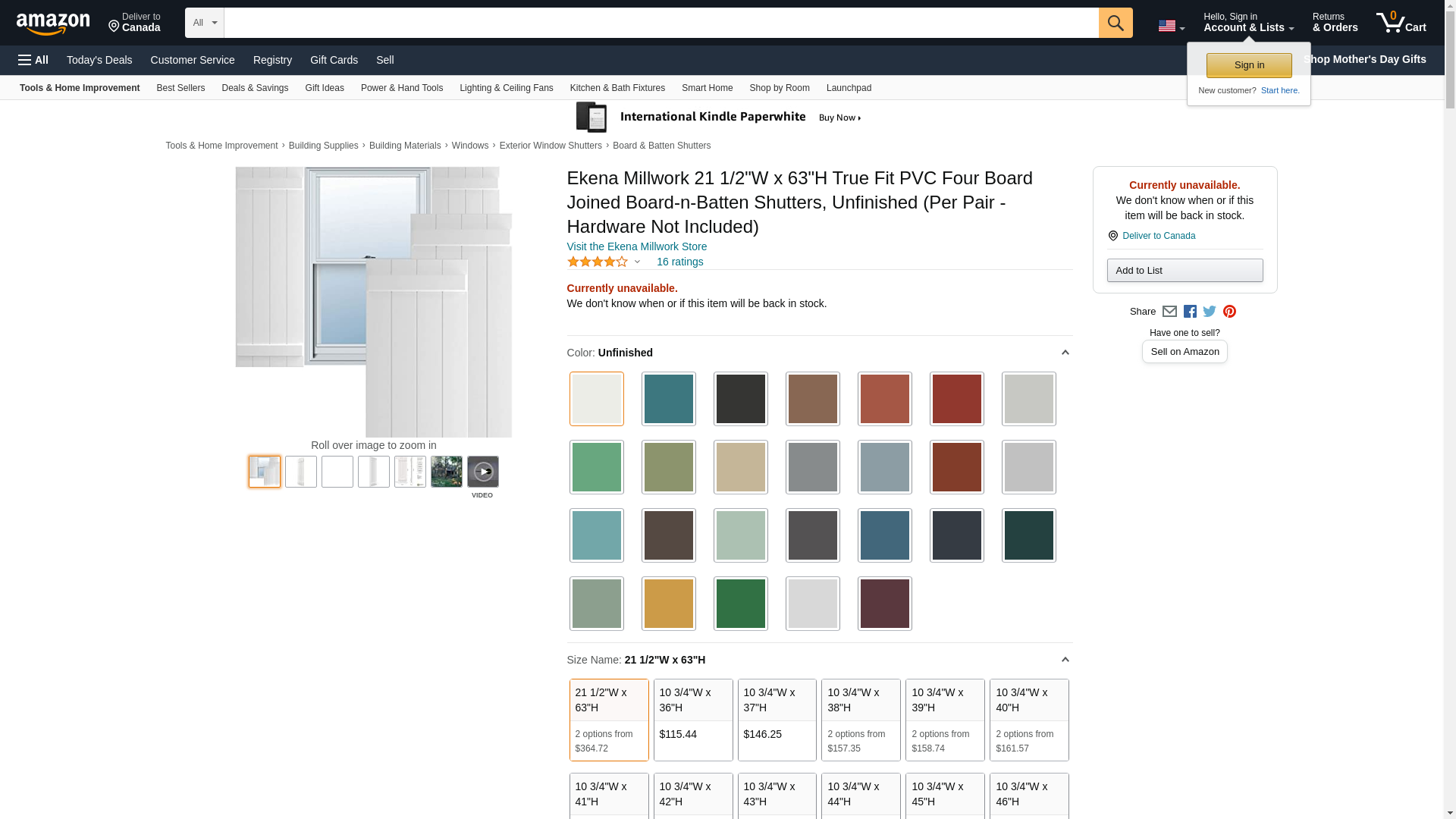 Ekena Millwork 21 1/2"W x 63"H True Fit PVC Four Board Joined Board-n-Batten Shutters, Unfinished (Per Pair - Hardware Not Included)
