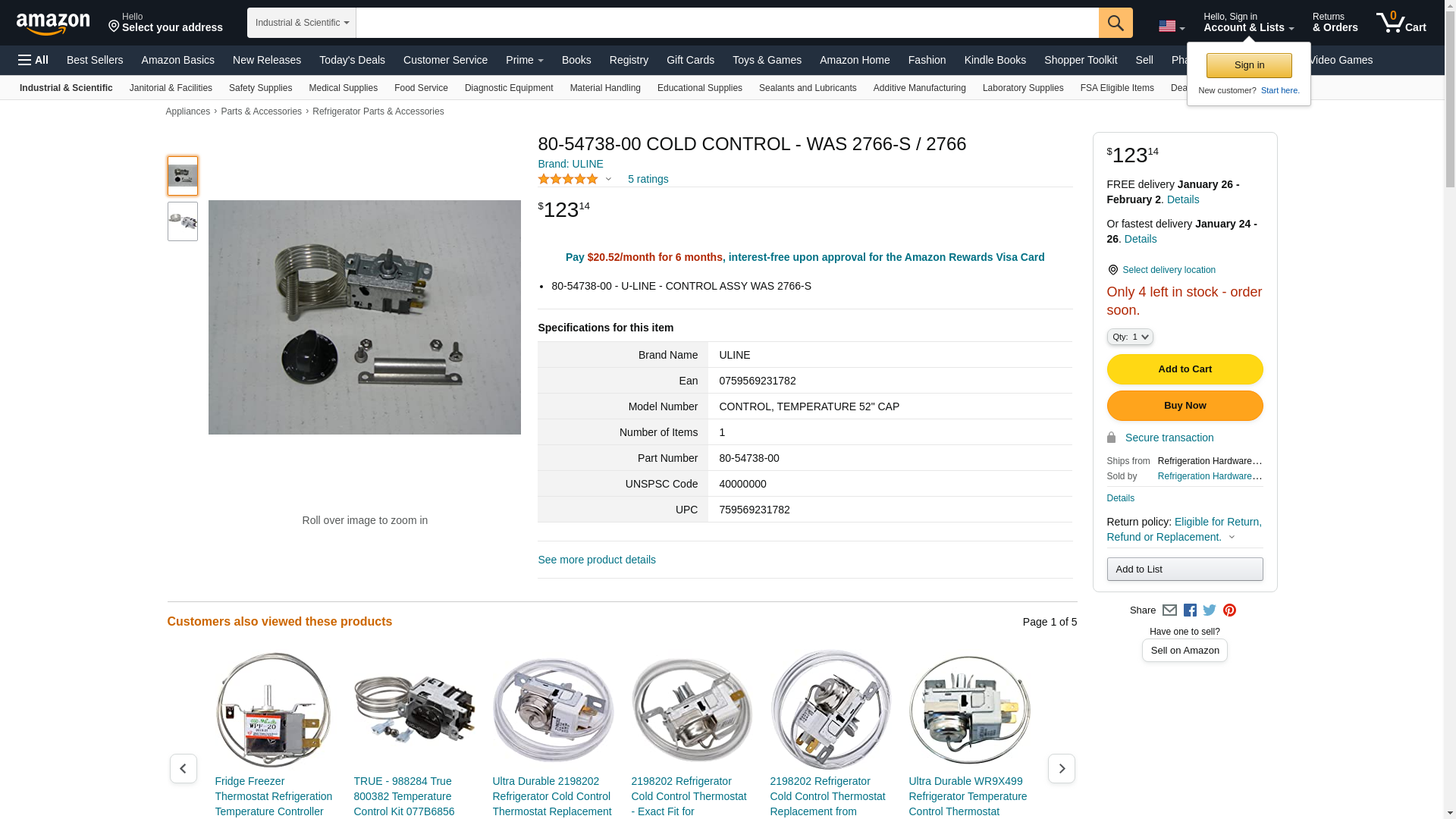 ![]() midwestapplianceparts.com | 80-54738-00-ULI-P | 1 | 1 | 1 @ $104.63 | |