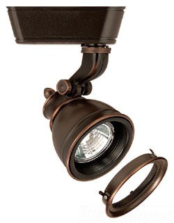 - Die-cast aluminum housing and spun metal shade. Tool-free lockable aiming. Fully enclosed back to prevent light leaks|1W minimum load allows the installation of an LED lamp. Available with pre-installed LED MR16 lamp (ht-876led). lamp sold separately on non-led version|For use with 120V track. Track Fixture is available in H, j/j2, and L track configurations. Order according to track layout specifications. Accepts MR16 LED or halogen lamp|Smooth and continuous dimming to 10% with an electronic low Voltage dimmer|350° horizontal rotation and 90° vertical. Easily re-lamped without the use of tools. Order as 874/874L lens to include ring that holds up to two lenses. Standards: UL & CUL listed for dry locations|Machined brass and spun aluminum|Order as 874/874L LENS to include die-cast retaining ring that holds up to two lenses|Fully enclosed back to prevent light leaks|Front loading for convenient re-lamping|Track adapters in dark bronze and brushed nickel to match track finishes