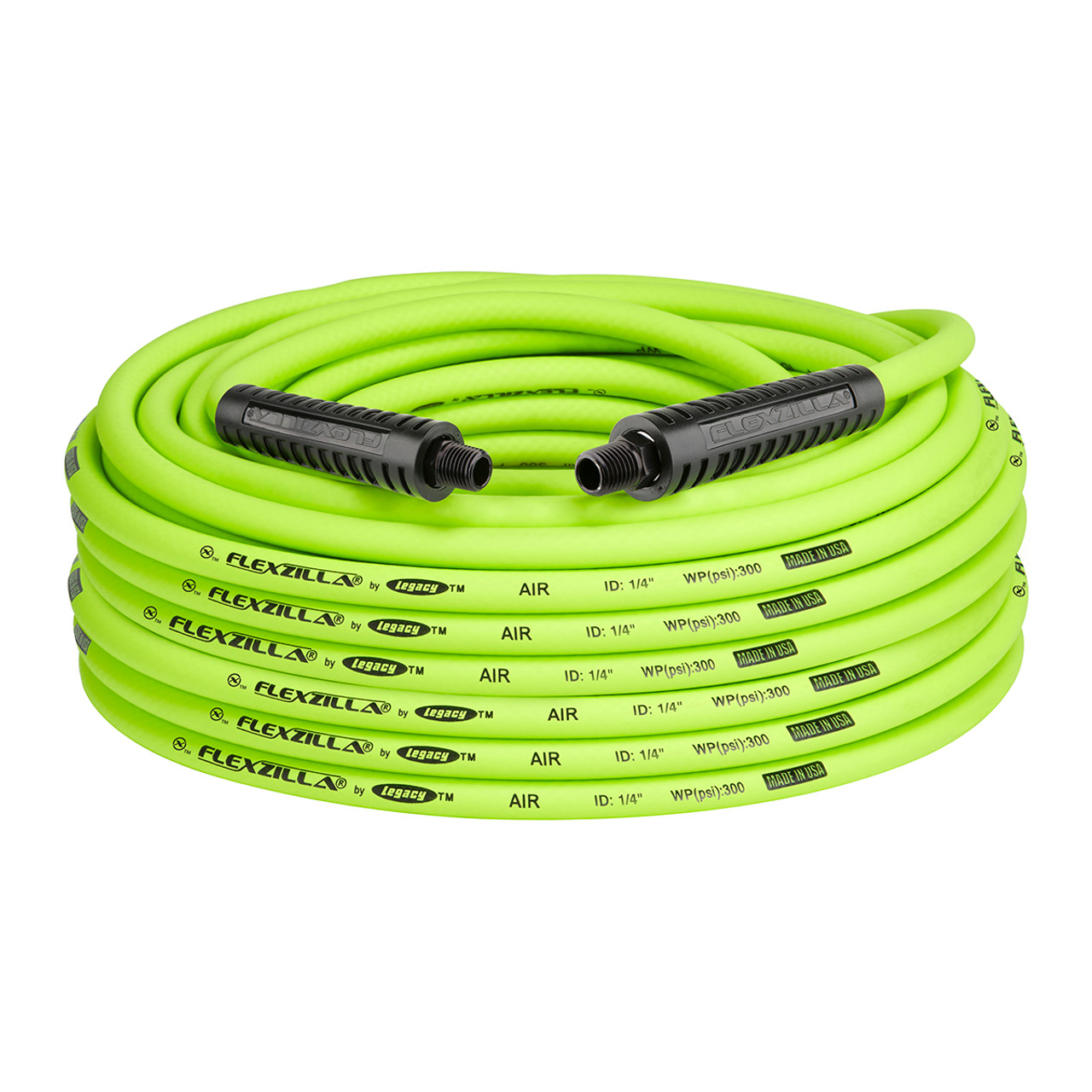 Flexzilla Air Hose, 1/4 In. x 100'., 1/4 In. MNPT Fittings, Heavy Duty, Lightweight, Hybrid, Zillagreen - HFZ14100YW2