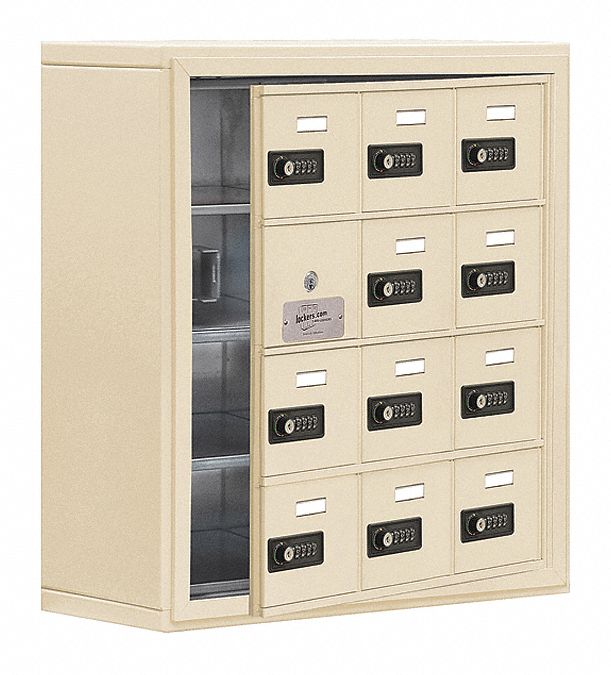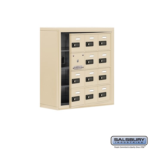 Salsbury Industries 19148-12SSC Cell Phone-Access Panel-4 Unit Surface Mounted-Resettable Combo Locks with 8-Inch Diameter Compartments, Sandstone