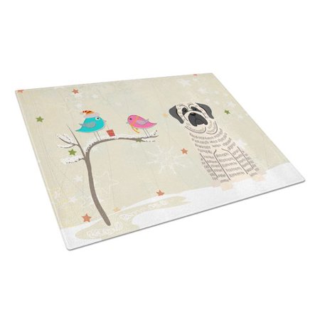 Carolines Treasures BB2488LCB Christmas Presents Between Friends Mastiff Brindle White Glass Cutting Board, Large