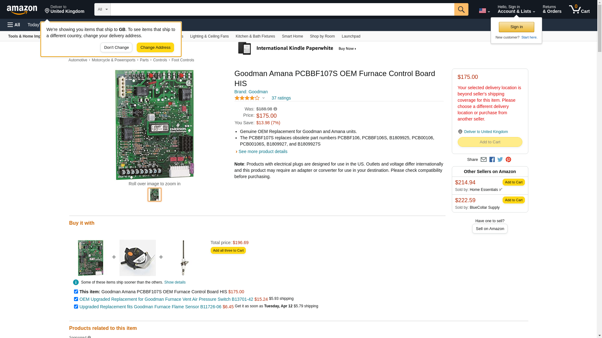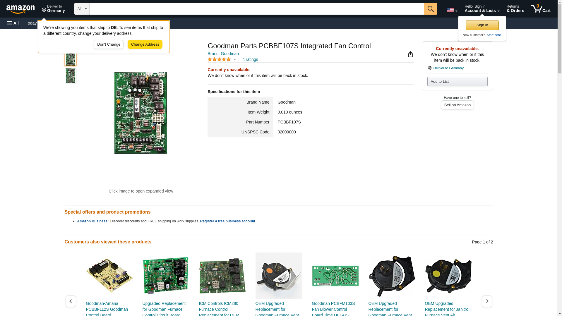 Genuine Original Equipment Manufacturer (OEM) parts! Goodman PCBBF107S Control Board