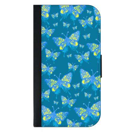 Blue Butterflies - Wallet Style Cell Phone Case with 2 Card Slots and a Flip Cover Compatible with the Standard Apple iPhone X - iPhone 10 Universal