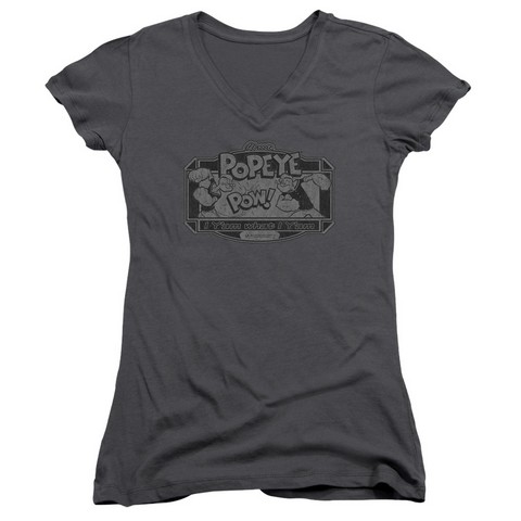 Trevco Popeye-Classic Popeye Junior V-Neck Tee, Charcoal - Small