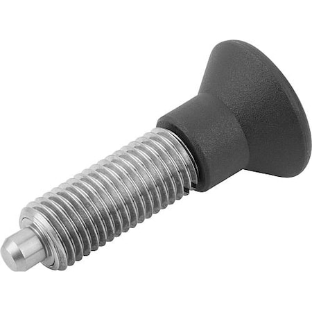 KIPP K0343.01004 INDEXING PLUNGER WO. GROOVE SIZE:0 D1=M08X1 FORM:G STAINLESS STEEL COMP:THERMOPLASTIC COMP:BLACK RAL7021 - MROSupply.com