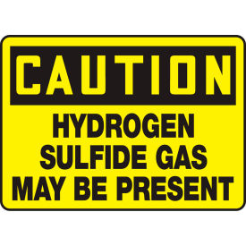 OSHA Safety Signs - CAUTION: Hydrogen Sulfide Gas May Be Present, 10" x 14". We offer signs in a variety of materials for indoor and outdoor use. Accuform safety signage is made in the USA. Call for custom options. Aluminum signs can withstand wash downs, harsh elements, abusive conditions, and features good chemical, abrasion, and impact resistance. Excellent for indoor and outdoor usage, aluminum is ideal for a wide variety of industrial-strength applications. All Aluminum signs feature Accuform "Duck Armor" liquid-based UV-protective coating which prevents fading and resists chemicals, abuse, and graffiti. <br>Service temperature range is -40 to 250F.