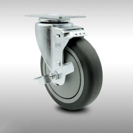 Stainless Steel Thermoplastic Rubber Swivel Top Plate Swivel Caster - 5" x 1.25" Gray Wheel & Top Locking Brake - 300 lbs Capacity/Caster - Service Caster Brand