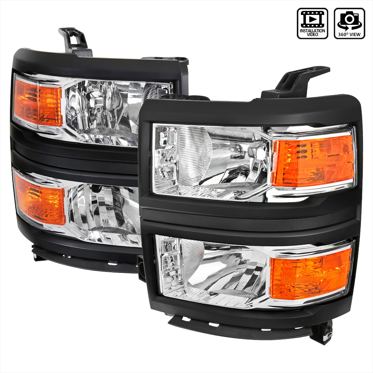 Spec-D Factory Style V2 Headlights w/ Amber Reflectors (Chrome Housing/Clear Lens) Chevrolet Silverado 1500 2014-2015 | 2LH-SIV14-V2-RS