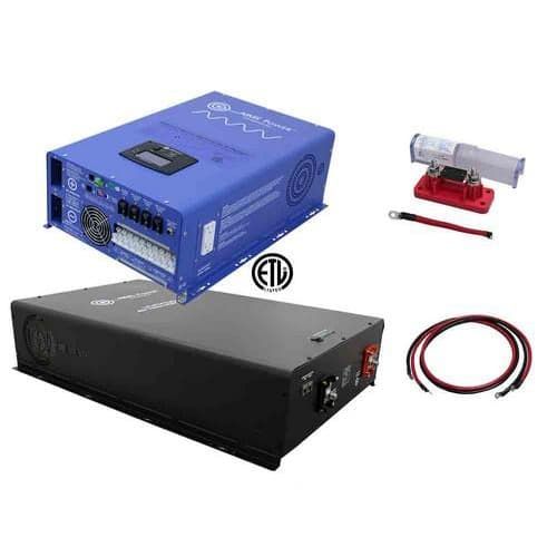 AIMS Power KITC-8K48240 Off Grid/Back Up Inverter and Battery Kit; Industrial Grade; Wall Mountable; Includes: 8000 Watt Pure Sine Inverter Charger, Fuse Kit, Lithium Battery, and Battery Cables