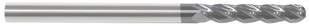 Carbide End Mill, Ball Nose End Style, TiAlN Coated, 5/32" Diameter, 4 Flute, Single, 2-1/2" L